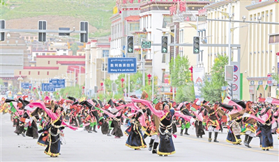 街頭巡游的格薩爾藏戲方隊(duì)