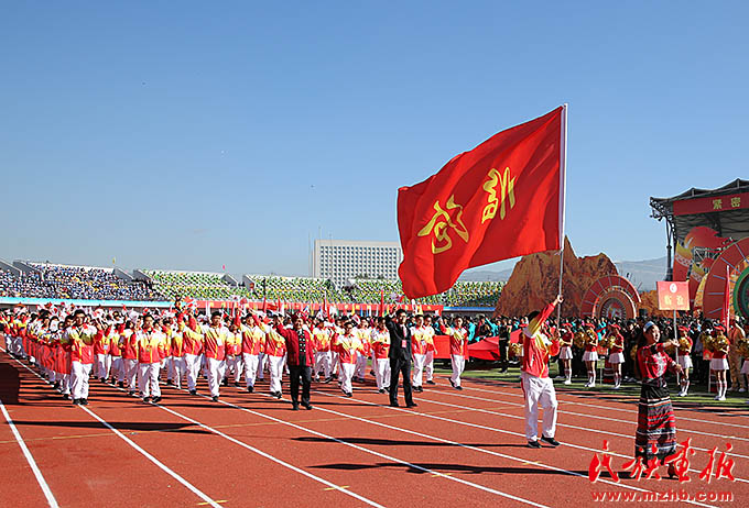 云南省少數(shù)民族運(yùn)動(dòng)會國旗、會旗方陣入場