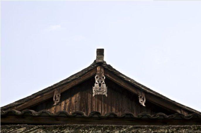 隨著時間流轉,懸魚在匠人時代里閃轉騰挪,歷經了由簡到繁的造型征途,也從功能構件升華為裝飾構件。同舊時的其他建筑構件一樣,懸魚在實際功用與藝術創(chuàng)造間轉徙。因此,它最先考慮了對木結構的保護,之后才生出裝飾作用等枝蔓。懸魚覆蓋在博風板合角處的罅隙位置,不僅保護了合角處不受雨雪侵襲,同時可以美化接縫。懸掛后,也從結構上起到了穩(wěn)定博風板的作用,同時還庇護了檁條端頭,有效地防止了木制建筑過早斑駁。時至今日,懸魚已然成為傳統(tǒng)建筑中結構性與裝飾性完美融合的一種構件,更是祖先智慧的一種體現(xiàn)。