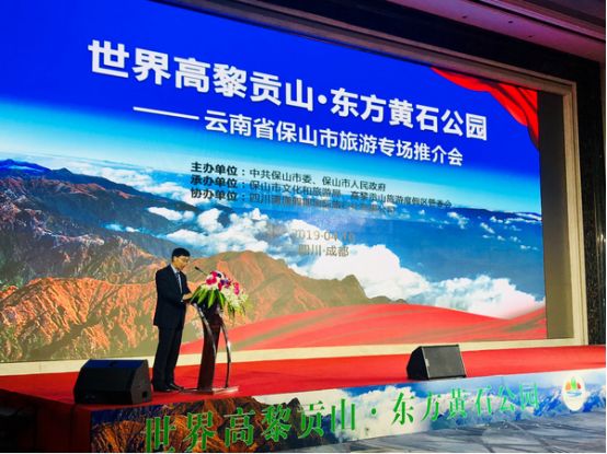 2019年4月10日,“世界高黎貢山·東方黃石公園”保山旅游專場推介會在成都市召開。成都和保山兩地旅游界、航空界、新聞界的嘉賓300多人出席推介會。保山市人民政府副市長宋光興、成都市人民政府副秘書長唐章昭出席推介會并致辭。宋光興副市長指出,成都素有“天府之國”的美譽(yù),自然風(fēng)光雄奇險秀,民族風(fēng)情多姿多彩,巴蜀文化積淀深厚,革命歷史可歌可泣,川菜享譽(yù)四方,川劇獨(dú)具魅力,旅游資源得天獨(dú)厚,是一座傳統(tǒng)與現(xiàn)代結(jié)合得最好的城市,是“一座來了就不想離開的城市”。高黎貢山作為全球生物多樣性最富集的地區(qū),有高等植物4897種,動物2389種,垂直高差達(dá)4000多米,幾乎分布有中國除沙漠之外的所有陸地氣候類型,是國家級自然保護(hù)區(qū),是世界公認(rèn)的地球上最重要的“物種基因庫”、是具有國際重要意義的“世界生物圈保護(hù)區(qū)”,是“三江并流”世界自然遺產(chǎn)的重要組成部分。高黎貢山獨(dú)特的地質(zhì)地貌孕育了保山宜人的氣候、優(yōu)良的生態(tài)、富集的溫泉、秀美的風(fēng)光、多彩的文化和富饒的物產(chǎn),使保山成為云南新興的旅游熱點(diǎn)和宜居城市。希望通過這次旅游推介會,能夠在成都、保山兩地之間架起一座便捷的橋梁,進(jìn)一步深化兩地文化旅游交流合作,共推旅游線路,共拓旅游市場,實(shí)現(xiàn)互惠共贏。