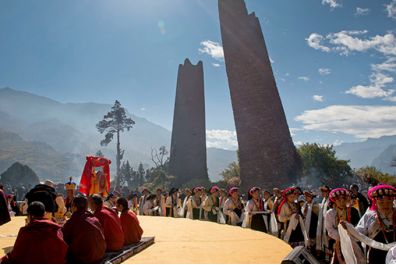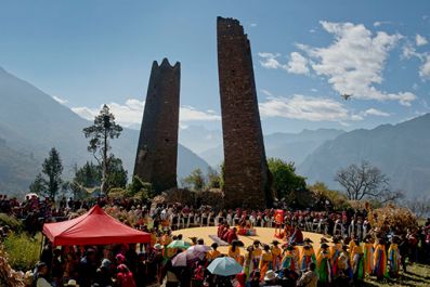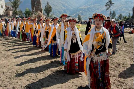 古碉下舉行傳統(tǒng)的女子成人禮儀式