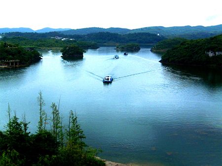 百花湖在朱昌鎮(zhèn)旁,湖中有100多個(gè)小島,以湖汊多、島嶼多見勝,遠(yuǎn)眺之下,很有幾分江南水鄉(xiāng)的韻味。游覽百花湖的最佳時(shí)間是春天,那時(shí)百花湖上就會(huì)百花盛開,姹紫嫣紅,百花湖也是因此而得名的。景區(qū)以湖光山色和巖溶地貌的自然景觀為主體,兼具秀、幽、奇、巧的特色。
