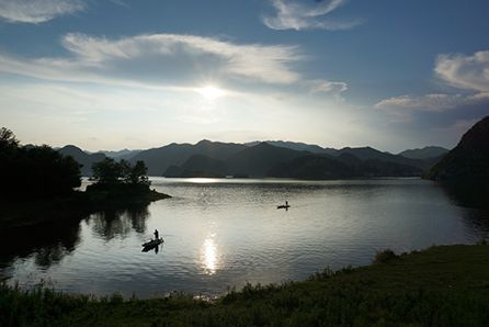 百花湖最大的特點(diǎn)是“山中水,水中山”,不知是山纏著水,還是水繞著山。在百花湖的東南岸邊,是明代的朱昌堡。這個(gè)城堡至今依然存在,長大約2000米,有東、西兩城門。這是一個(gè)軍事城堡,是當(dāng)年軍隊(duì)駐扎的地方。這里有三座石頭山峰,分別被稱為“大將軍”、“二將軍”和“三將軍”。據(jù)說,朱元璋皇帝當(dāng)年派來的三個(gè)將軍轉(zhuǎn)戰(zhàn)于此。離朱昌鎮(zhèn)大約1000米的地方,有個(gè)營盤坡,清代在這里也設(shè)有一個(gè)城堡,現(xiàn)在,這里只剩下殘?jiān)j壁,但是仍然能夠看見城垣、垛口和炮。