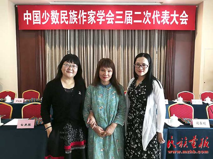 帕蒂古麗(中)出席中國少數(shù)民族作家學(xué)會第三屆二次代表大會
