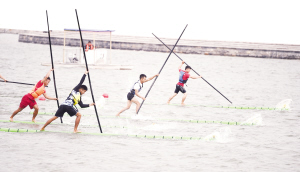 獨竹漂比賽是直道競速項目,運動員站在竹漂上,利用手中的竹竿劃水前進,以抵達終點的先后次序決定名次。本屆獨竹漂比賽分為男子直道競速和女子直道競速兩大項,設有60米、100米、200米距離的小項,有13支隊伍參加。其中,河南隊為首次參加。