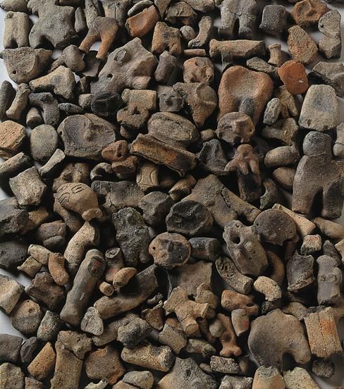 繩文時代文化中以陶器最為著名,繩文陶器多呈黑褐色和茶褐色,容器較多。器物裝飾繁雜,以厚重華麗為特點,與世界其他地區(qū)的陶器均不相同,被認(rèn)為是日本本土產(chǎn)生的一種器型(圖二)。