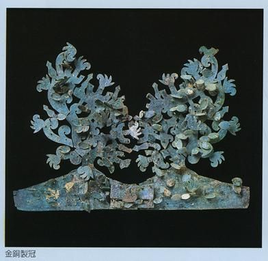 藤之木古墳出土的鎏金冠飾,在我國遼寧北燕墓地和高句麗墓均有類似文物發(fā)現(xiàn),是鮮卑等北方少數(shù)民族貴族流行的冠飾,稱為鳥型冠飾。