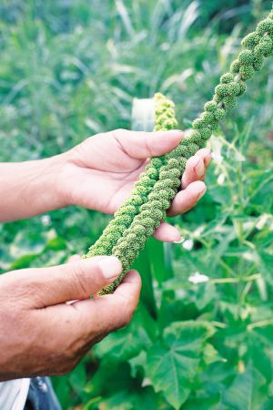 答:是啊。原來我們這些五谷類、蔬菜類都是多樣化的吃法,像黑芝麻,炒熟了舂成醬,拿糯米飯來蘸著吃;南瓜籽連皮炒熟了磨成粉,撒在菜上做調料?,F(xiàn)在的年輕人喜歡買熟食吃,不想種,覺得很麻煩。老人也沒有辦法,他們很擔心如果發(fā)生天災人禍,找不到種子來種,可怎么辦。