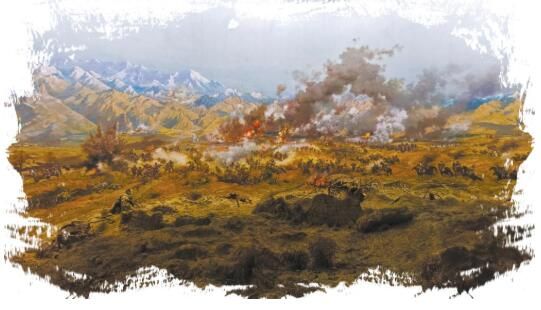 中國工農(nóng)紅軍西路軍紀念館內復原當年戰(zhàn)斗場景的油畫。賈泓 鄭思哲攝