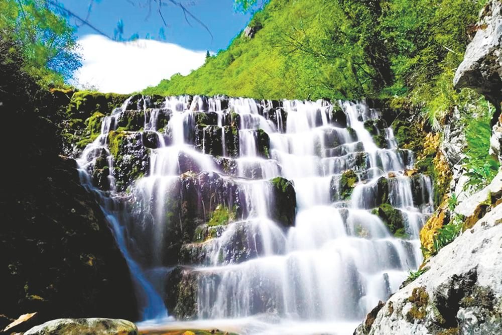 在卡索峽景區(qū),群山涌翠,古木參天,花木繁茂,芳香馥郁,清脆的鳥鳴不絕于耳,野兔、馬鹿、馬雞等野生動物不時(shí)出沒于河畔叢林,野趣十足。
