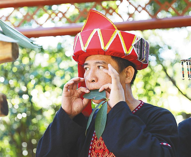 黎族群眾進(jìn)行“樂器”演奏。李天平 攝