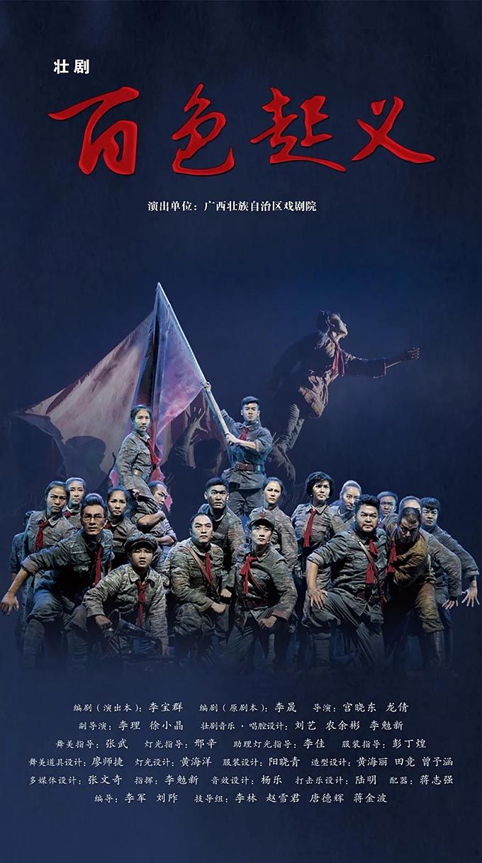 壯劇《百色起義》以1929年發(fā)生在廣西的百色起義為素材創(chuàng)作而成,以百色起義的籌備、舉行為主線,分為初到南寧、群雄聚會(huì)、英靈歌唱、百色大地等部分,通過獨(dú)具廣西特色的壯劇方式來(lái)表現(xiàn)紅色歷史題材,塑造了鄧小平、李明瑞、韋拔群等眾多百色起義指戰(zhàn)員形象,謳歌了舍生忘死、救國(guó)救民的革命先烈和為中國(guó)革命付出巨大犧牲的壯鄉(xiāng)人民。