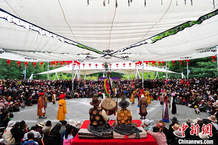 資料圖為藏戲《蘇吉尼瑪》在拉薩市宗角祿康公園上演。 記者 貢嘎來(lái)松 攝