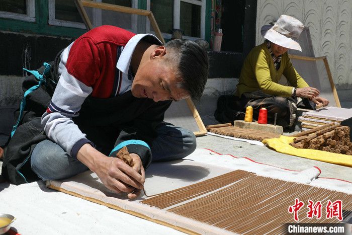資料圖為西藏拉薩尼木縣吞巴鄉(xiāng)手藝人在自家手工制作藏香。 記者 貢嘎來(lái)松 攝