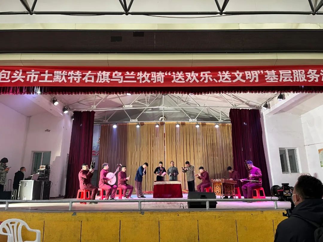 “我們從包頭市藝術(shù)劇院以及旗縣區(qū)烏蘭牧騎抽調(diào)專業(yè)隊(duì)員共組建了17支小分隊(duì),在為期一個(gè)月的時(shí)間里,在全市邊遠(yuǎn)農(nóng)村牧區(qū)的170多個(gè)服務(wù)點(diǎn)開展‘送歡樂(lè)、送文明’基層服務(wù)活動(dòng),為廣大農(nóng)牧民群眾送去歡樂(lè)和文明的同時(shí),傳遞黨的聲音和關(guān)懷?!笔形麄鞑课乃嚳瓶崎L(zhǎng)馮凌云說(shuō)。