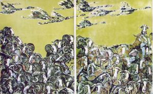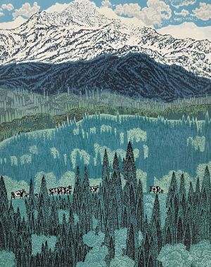 《天山腳下新牧場》呂劍利 版畫 73cm×93cm 全國版畫展展出作品