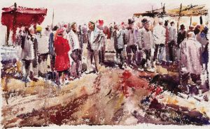 《巴扎上的人們》 賈忠 水彩 79cm×46cm