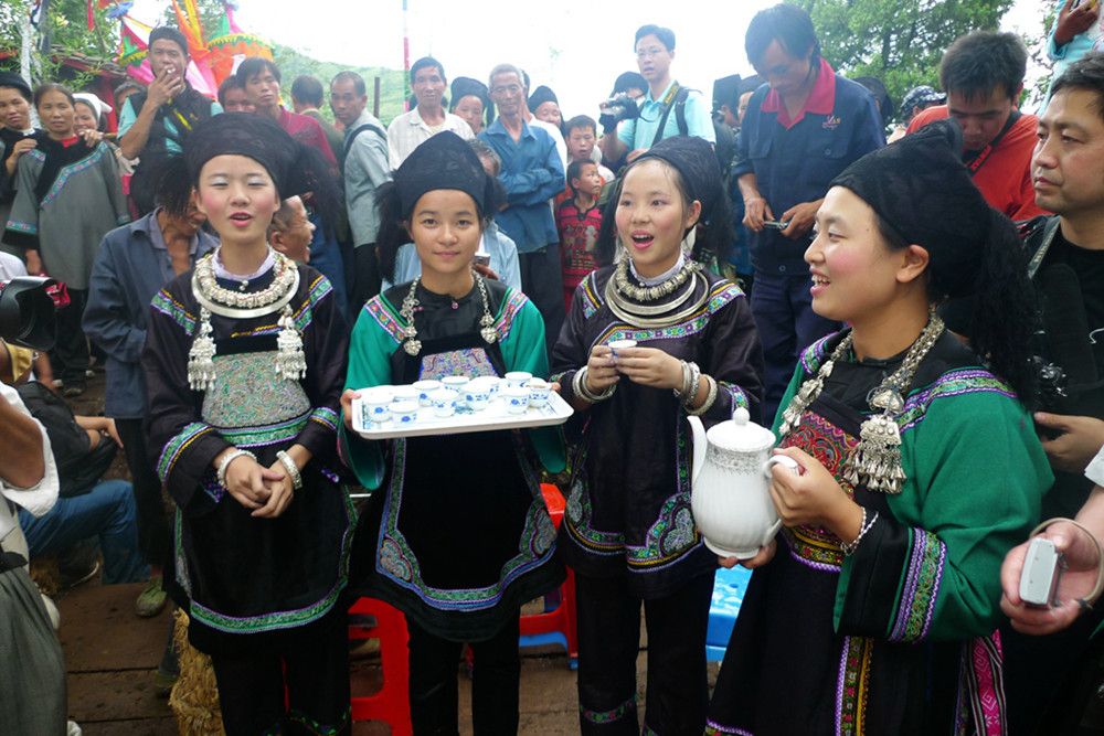 人們傳說(shuō)只有醉倒了"霞神",它才能永遠(yuǎn)留在這方,才能使這里風(fēng)調(diào)雨順。當(dāng)水書(shū)先生念了最后的咒詞,祭典才在鼓樂(lè)聲和歡呼聲中結(jié)束。最后,各族系將祭肉一并聚攏,聚餐慶祝。天黑之后,人們秘密地將"霞神"收藏起來(lái),至此,"敬霞"活動(dòng)全部結(jié)束。