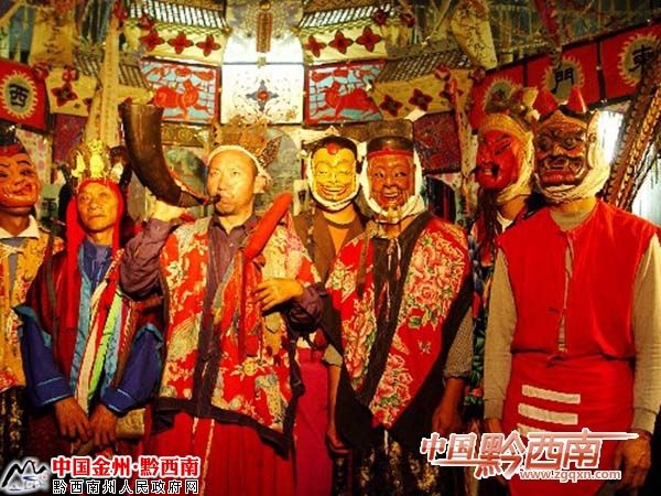 生活在黔西南州貞豐、晴隆、普安、望漠、冊(cè)亨、安龍、興義等8縣市的20萬(wàn)苗族同胞的先民,在遠(yuǎn)古時(shí)代“信鬼不信神”,認(rèn)為人的靈魂不滅,祖先死后靈魂仍在,可以保佑子孫后代。因此,苗族先民往往祈求祖先,助其實(shí)現(xiàn)心愿,一但酬愿便要祭祀祖先,俗稱“還儺愿”。還愿時(shí)舉行的儀式就是儺儀。還儺愿主要由苗巫師主持,跳儺時(shí)配以唱、念及動(dòng)作,儀式非常莊嚴(yán)肅穆。明末清初民間藝人開(kāi)始將“還儺愿”的部分內(nèi)容整理、加工、完善后搬上舞臺(tái),便成了儺戲。因此說(shuō),儺戲是從莊嚴(yán)的祭祖儀式脫胎而成的一種獨(dú)具特色的地方曲目。儺戲沒(méi)有管弦樂(lè),但有節(jié)奏明快的鑼鼓伴奏,曲調(diào)流暢悅耳,劇情風(fēng)趣詼諧,更具有濃郁神秘的苗族文化色彩,深受苗族同胞的喜愛(ài)。