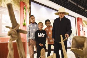 在涇源縣大灣鄉(xiāng)楊嶺村村史館,孩子們聆聽團結發(fā)展故事。馮開華攝