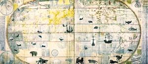 李之藻年輕時就對實學(xué)頗感興趣,曾自行繪制過明朝兩京十三省的地圖。見到利瑪竇用西法繪制的世界地圖后,李之藻敏感地意識到,這個地圖的繪制方法與中國傳統(tǒng)的“計里畫方”方法不同,是“取天文以準(zhǔn)地度”,用經(jīng)緯度確定地理方位。對利瑪竇的學(xué)問一見而傾心的李之藻,每天都要到利瑪竇的公寓學(xué)習(xí)地理、天文知識,每次都要花上四五個小時。1602年,李之藻與利瑪竇結(jié)合中西繪圖技術(shù),合作繪制了一版世界地圖《坤輿萬國全圖》,這幅地圖改變了當(dāng)時通行的將歐洲居于地圖中央的西方繪圖格局,把子午線向西移動170度,從而使東亞的中國居于地圖的中央,并且全圖標(biāo)上了詳細(xì)的漢字標(biāo)識,這是中國最早的世界地圖。