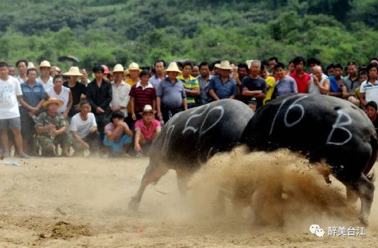 ▲ 斗牛之牛,都是專門精心飼養(yǎng)的,不從事耕地、拉車、推磨等勞作,均為雄性水牛,分為寬角、窄角兩個(gè)級(jí)別。斗牛賽制,先為淘汰賽,決斗時(shí)改為單循環(huán)賽,最后勝出者為年度牛王。斗牛場面十分慘烈,動(dòng)人心魄,觀眾少則數(shù)百,多則數(shù)萬。