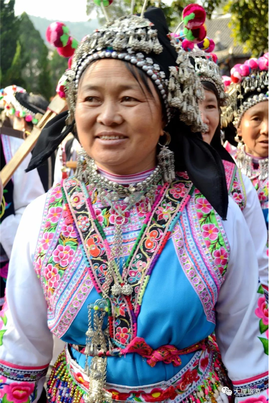 彌渡彝族好賽裝,每逢婚喪嫁娶、趕集、集會都要比一比穿戴。每年農(nóng)歷正月十五鐵柱廟彝族踏歌會,那是賽裝高潮。