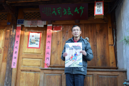 張旭東的童年,是在祖父母的耳提面命中度過的,他跟隨老人習書繪畫,學禮明俗。到了弱冠之年,他逐一拜訪古鎮(zhèn)中尚在的民國時期出生的老輩文人,向他們請教劍川白族傳統(tǒng)民俗,并做了系統(tǒng)梳理,這也為他后來繪制年畫、撰寫春聯(lián)打下扎實的理論基礎。