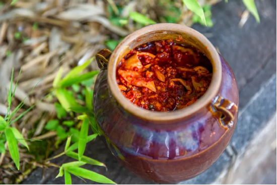 關(guān)于鶴慶的滋味,最深刻的記憶還要數(shù)那一小碟紅亮鮮香的豬肝胙。豬肝胙是用新鮮的內(nèi)臟、排骨佐以食鹽、花椒、辣椒、八角、草果等眾多香辛料研制而成的鶴慶特色美食。腌制好的豬肝胙,開壇即可聞到濃重的香氣撲鼻而來(lái),蒸熟下飯,炒菜提鮮,豬肝胙濃郁的滋味都不會(huì)令人失望。