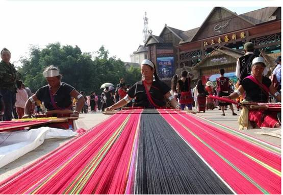 織錦是各民族生活中不可缺的勞作。紡線原料以棉纖維和麻纖維為主。 棉主要是草棉、白棉沙線、黑棉沙線、紅棉沙線,麻主要為苧麻和野生火麻。在織錦的過程中,婦女端坐在紡車前,凝神專注地操持著手中的活計。 織一匹布大約需要20天至一個月左右的時間。