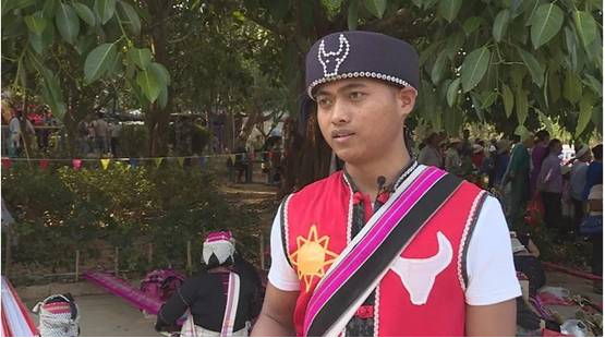 翁嘎科魏明介紹:“佤族男服飾以黑或者與紅、黑白、黑紅為搭配,女服飾裙子是純手工藝以黑白、黑紅為主基調(diào), 頭飾是用銀白色的頭飾進(jìn)行裝飾,裹著一層類似于項鏈一樣的飾品,最原始的頭飾還是用黑布裹起來的,演變到現(xiàn)在的話還需要做一些裝飾?!?/p>