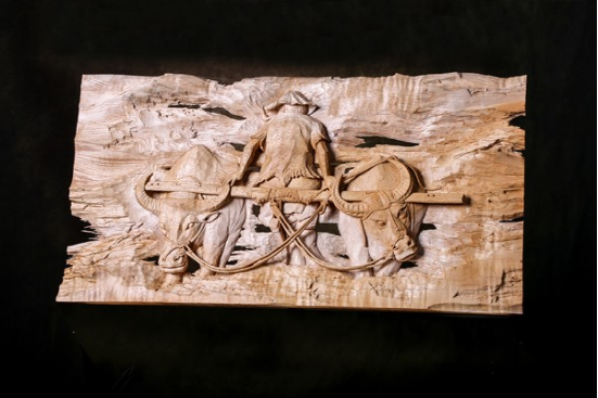 《門神》、《福滿門》這是劍川木雕在繼承傳統(tǒng)基礎(chǔ)上,對傳統(tǒng)的一種大膽嘗試性的發(fā)揚創(chuàng)作。這些作品的特點是,既保留了嫻熟的傳統(tǒng)木雕技藝,只是通過巧妙的組合,在現(xiàn)成的古老大門上雕出“門神”或用舊門框作為木雕作品的邊框,從而產(chǎn)生一種新的意趣,這種創(chuàng)意很適合當下都市的審美要求,也是劍川木雕未來發(fā)展中很值得提倡的新思路。木雕復(fù)制《張勝溫畫卷》