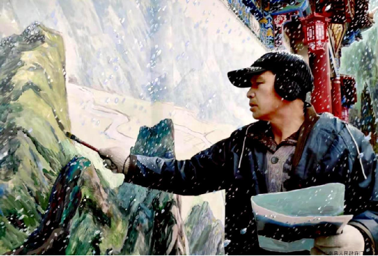 進士后裔陸華岳老師在蓮湖公園冒著嚴(yán)寒創(chuàng)作 (蘭天明攝影)