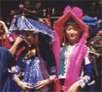 惠東女服飾文化源遠流長,其形成、發(fā)展過程一直是中外人類學、民俗學專家關(guān)注的課題。其來源有種種傳說,目前尚無定論。據(jù)史料記載,清代中后期,惠東婦女上穿黑色或紫色長袖挖襟衫,下穿黑色大折褲。衣長、胸、腰背寬闊,下沿稍呈弧形外展,與清代流行的“大夫衫”(長式挖襟衫)類似。不同的是袖口偏窄,袖子接長,故名“接袖衫”又名“卷袖衫”接袖的用意十分有趣,為的是讓新娘入洞房時提起長袖以遮掩一臉羞紅;過了3日,才在長袖一半處翻卷逢住固定。到了清未“接袖衫”各部分略為收縮,衣沿弧度加長,臂圍寬度加闊并向外彎展,腰圍處的中式紐攀減少,兩個連在一起,袖口繞藍布邊。領(lǐng)圍上刺繡圖案由簡變繁,領(lǐng)根下方形色布改為三角形。胸、背中線兩側(cè)綴做兩塊方形黑色、深褐色綢布,其四邊各鑲接一塊三色形色布,改稱“綴做衫”。褲子為“大折褲”又名“大筒褲”,俗稱“漢裝褲”。褲一般用黑色布,也有用藍色的。褲腳寬約1.2尺,褲頭約2尺,縫一道5寸的藍色布邊。其樣式從清代中后期至今沒有多大變化,惟質(zhì)料由舊時用粗布,今天改為通用黑綢布?;輺|女服飾,歷來重視腰以上部分,特別以頭飾最為突出,花樣繁多,不同場合、不同年齡的頭飾有明顯區(qū)別。