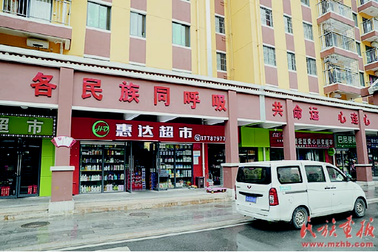 民族團(tuán)結(jié)標(biāo)語(yǔ)在和諧社區(qū)隨處可見。