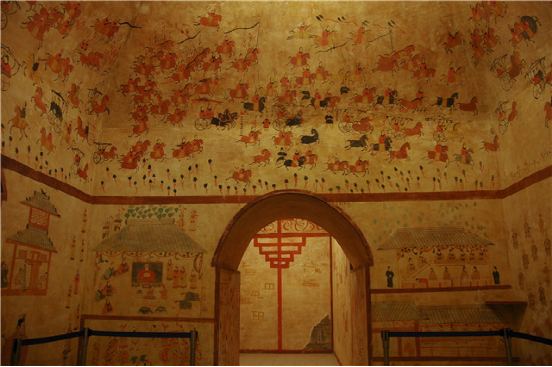 和林格爾東漢壁畫墓復(fù)原陳列展。位于和林格爾縣新店子鎮(zhèn)的小板申東漢“使持節(jié)護烏桓校尉”壁畫墓,是秦漢文化的主要標(biāo)志性實物,是東漢莊園制度的真實再現(xiàn),也是民族團結(jié)的重要歷史見證。本館以1:1.5的比例進行了復(fù)制并展示給觀眾。