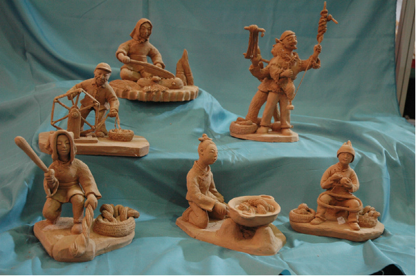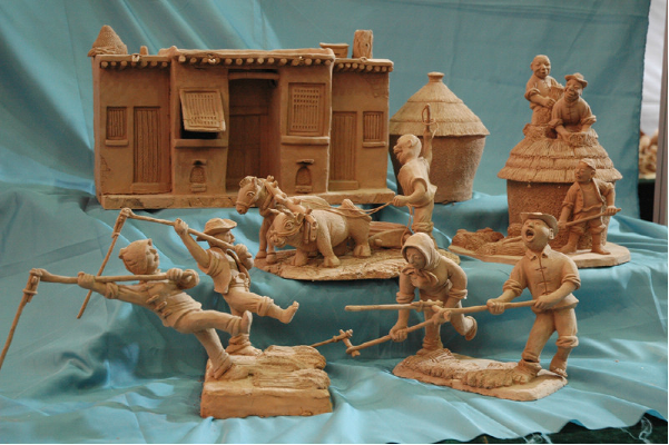 泥塑藝術(shù)是我國一種古老常見的民間藝術(shù)。它以泥土為原料,以手工捏制成形,或素或彩,以人物、動物為主。不同的民間風俗,流傳著很多動人的傳說故事,這些構(gòu)成了泥塑藝術(shù)的精神內(nèi)核。民間泥塑的用途主要有祈子延壽、納福招財、驅(qū)邪避災和裝飾擺設等。泥塑成本低,費工少,是老百姓喜聞樂見的藝術(shù)表現(xiàn)形式,它往往和節(jié)令、禮儀、風俗聯(lián)系在一起,反映的是當?shù)剞r(nóng)村人們?nèi)粘I畹牟煌瑘鼍?,人物栩栩如生,場景鮮活生動。