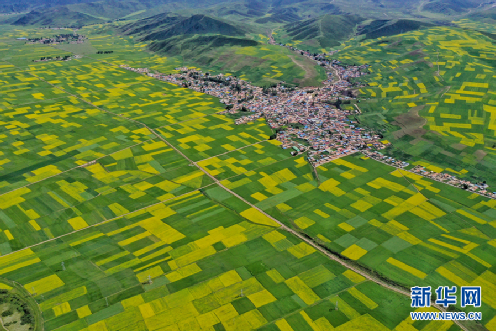 航拍門(mén)源縣油菜花海。新華網(wǎng) 宋忠勇 攝