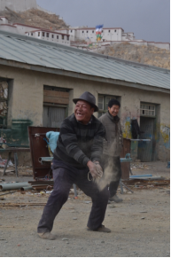 江孜這家工廠叫“鐵木家具廠”。廠長(zhǎng)正在與員工一起沉浸于“打石頭”游戲帶來(lái)的快樂(lè)之中。廠長(zhǎng)告訴記者:“如今,在江孜,以及西藏其他城市里,基本上看不到還有人玩這種游戲。只有鄉(xiāng)下在逢年過(guò)節(jié)的時(shí)候,人們才會(huì)玩這種游戲。而鐵木家具廠的工人之所以還玩‘打石頭’,是因?yàn)檫@項(xiàng)游戲是廠里保持了30多年的傳統(tǒng)。”