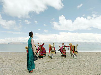 藝術(shù)團(tuán)在湖邊練習(xí)磁石彈舞