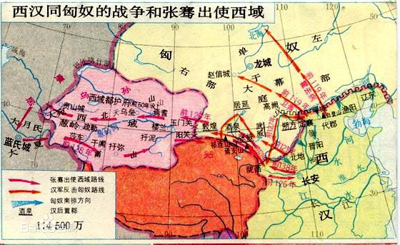 漢武帝時期,反擊匈奴戰(zhàn)爭主要在元光二年至元狩四年(前119年)間進行,先后打了十幾仗,其中帶決定性的大規(guī)模戰(zhàn)役有三次。第一次戰(zhàn)役發(fā)生在元朔二年(前127年)。這一年匈奴侵入上谷、漁陽(北京密云縣),“殺略吏民千余人”。漢武帝派車騎將軍衛(wèi)青、將軍李息率兵出云中(內蒙古托克托旗),沿黃河北岸西進,采取避實擊虛的戰(zhàn)略,迂回到隴西,對河套及其以南的匈奴軍進行大包圍,發(fā)起突然襲擊,匈奴白羊王逃走。西漢完全收復了河南地區(qū),解除了匈奴對長安的威脅。西漢在這里設置了朔方郡(內蒙古杭錦旗)和五原郡(內蒙古五原),又下詔募民屯邊,建立了反擊匈奴的基地。