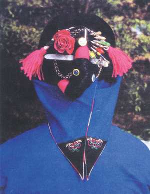 中原地區(qū)婦女恪守舊俗,逢年過節(jié)、婚慶喜禮必穿盛裝。盛裝的頭飾以銀簪花為主,多為彩蝶、鳳鳥、菊花、牡丹、喜鵲等,富家還在其上鑲寶石、玉或鍍金。簪花的下面巧裝一個(gè)彈簧,這樣,女子走動(dòng)時(shí),便會(huì)滿頭珠翠閃爍不定,眩人眼目,偶綴飾數(shù)串流蘇,垂于女子前額和雙鬢,更增添了女子的風(fēng)韻。