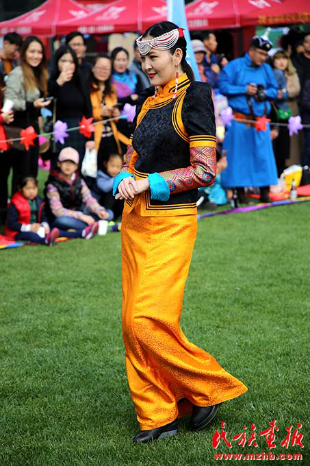 開(kāi)幕式上,發(fā)起并組織“首屆在京蒙古族那達(dá)慕大會(huì)”的原中央民族學(xué)院民語(yǔ)系77級(jí)蒙古語(yǔ)班方隊(duì)通過(guò)主席臺(tái)