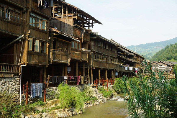 有的吊腳樓為三層建筑,除屋頂蓋瓦以外,上下全部用杉木建造。屋柱用大杉木鑿眼,柱與柱之間用大小不一的杉木斜穿直套連在一起,不用一個鐵釘也十分堅固,房子四周還有吊樓。底層是用來飼養(yǎng)家禽,放置農(nóng)具和重物;二層是飲食起居之所;第三層透風(fēng)干燥,十分寬敞,除作居室外,也可隔出小間用作儲糧和存物。