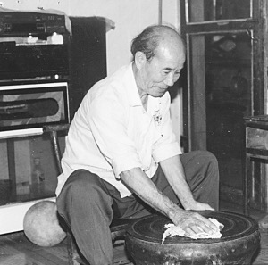 韋萬義在精心保護(hù)銅鼓