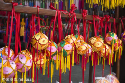 現(xiàn)今,壯家手工藝者們不斷為繡球這一古老藝術(shù)品注入新的活力,令其在新時(shí)代再次放出璀璨的光芒,廣西曾做過超大繡球供日本國(guó)立民族博物館收藏,同時(shí)為迎接港、澳回歸分別制作直徑達(dá)1.97m和2m的超大型繡球;為慶祝申奧成功,制作了直徑達(dá)2.2m的超大型繡球;為迎接中國(guó)——東盟博覽勝利召開,制作了直徑2m以上的超大型繡球等,廣西靖西縣舊州已成為重要的繡球生產(chǎn)基地。