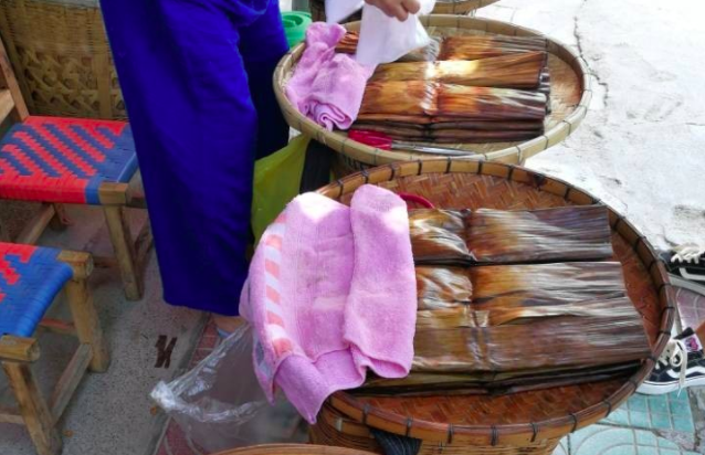 褡褳粑是布依族人民喜愛的傳統(tǒng)食品,因其如褡褳袋而得名。每逢農(nóng)歷七月十五日(中元節(jié)),布衣族人民均普遍制作褡褳粑,作為祭祀祖先的供品。相傳兩千多年前,祭祖是用當(dāng)?shù)厥a(chǎn)的芭蕉果和普通糍粑,后來(lái)發(fā)展為用芭蕉和糯米蒸熟,加上紅糖,制成甜味糍粑。又經(jīng)過(guò)多次改進(jìn)才形成現(xiàn)在的褡褳粑。如今,除七月十五日以外,逢年過(guò)節(jié),宴客,走親訪友,也要制作褡褳粑。蒸熟后的褡褳粑呈長(zhǎng)方形,色澤醬黃,香甜細(xì)膩,具有芭蕉果和芭蕉葉的特殊香味。熱吃軟滑細(xì)膩,冷吃清涼甜潤(rùn),烙食香脆。