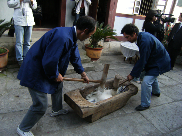 貴陽(yáng)烏當(dāng)區(qū)偏坡布依寨村民做打糕 老鐵供圖