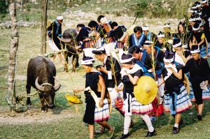 白褲瑤的喪葬習(xí)俗十分獨特,整個葬禮悲壯、肅穆,氣氛凝重莊嚴(yán)。參加葬禮的親友依次排隊順時針繞牛一圈,緬懷逝去的親人。2007年10月拍攝。