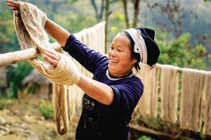白褲瑤婦女紡紗織布做衣,新買的棉紗要經(jīng)過蒸煮、漂洗、涼曬才可織布,而年輕一代的白褲瑤婦女大多直接到市場上買白布。2007年10月拍攝。